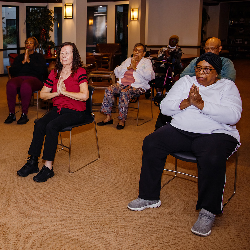 Reduce stress and improve strength, flexibility, and focus by joining this modified yoga class where we perform different poses and stretches while seated in a chair. This accessible fitness practice is great for seniors looking to maintain mobility, office workers seeking relief from desk work, or anyone simply searching for a gentle way to exercise. We recommend that you bring water, and we ask that you wear sneakers or closed-toed shoes with good grip for safety.
